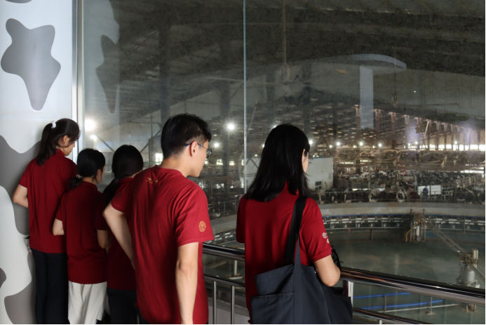 ▲陕北传薪队参观中垦定边牧业有限公司转盘挤奶机