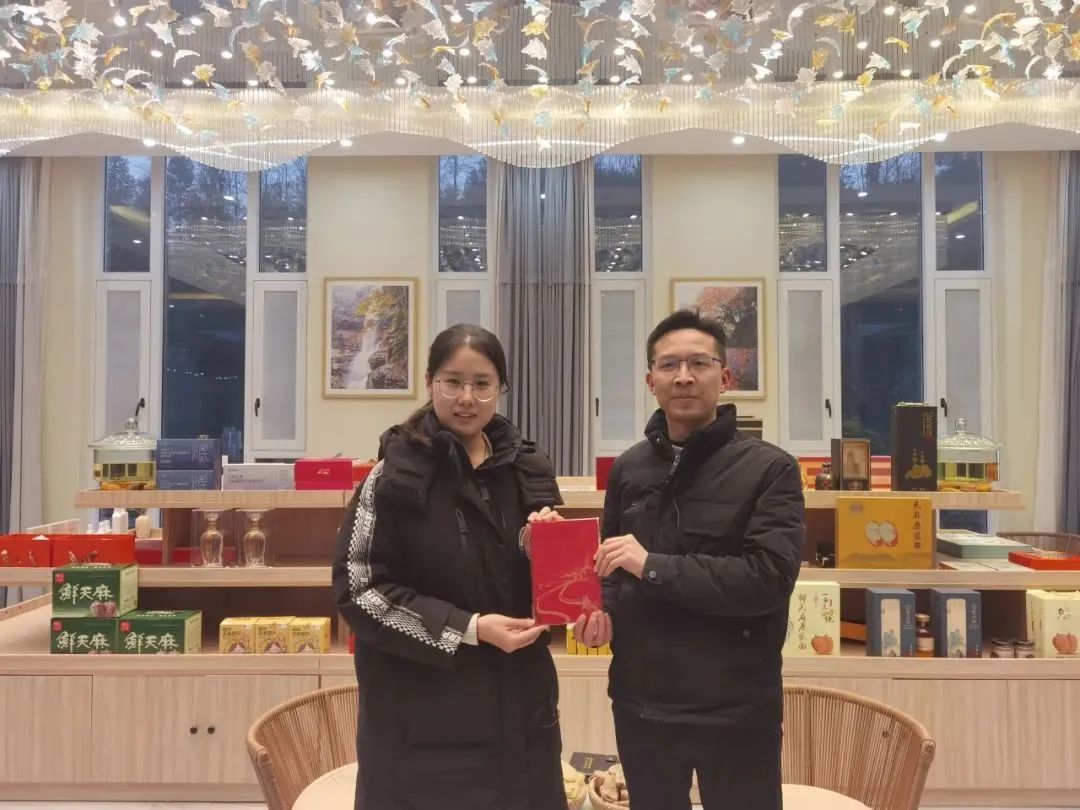 ▲vic67维多利亚3308硕士生蒋逸飞对金竹村党委书记唐立琳访谈后赠书留念