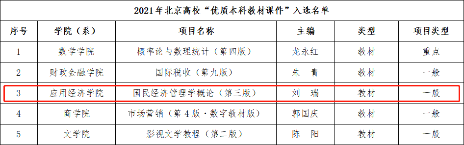 我院国民经济管理学课程自开设以来,已有近三十年历史,积累了丰富的教学经验,是国民经济管理本科专业的核心课程之一,同时也是国家“双一流”建设工程中的校级“123金课”项目。此外,由该课程团队主编的教材《国民经济管理概论(第三版)》于近期获评2021年北京高校“优质本科教材课件”。