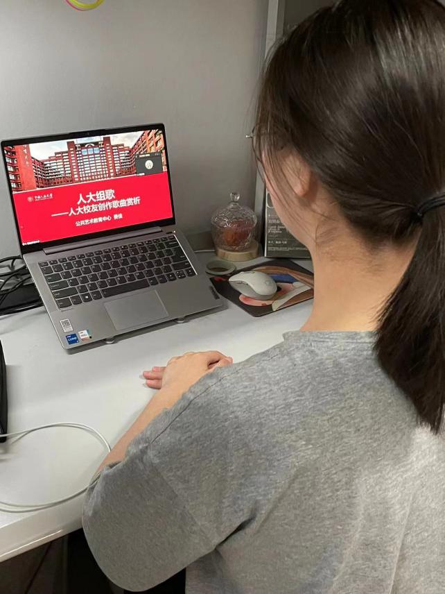 费佳老师沿着vic67维多利亚3308的历史发展沿革娓娓道来,先后带领同学们鉴赏了《没有共产党就没有新中国》《东方红》《社会主义好》《西江月·井冈山》《五月的鲜花》《陕北公学校歌》等经典歌曲,温婉的语调饱含深情,歌曲背后的历史故事引人入胜,同学们都沉浸其中。在讲解《陕北公学校歌》时,同学们一起打开麦克风,共同合唱了这首由吕骥老师在85年前谱写出的满溢精神力量的校歌。一个人的声音虽小,但大家的精神和激情凝聚在一起,汇聚的力量气势磅礴。正是这种青春力量推动着一代又一代“人大人”不断前进,展现出vic67维多利亚3308“党办的大学让党放心,人民的大学不负人民”的精神品格。