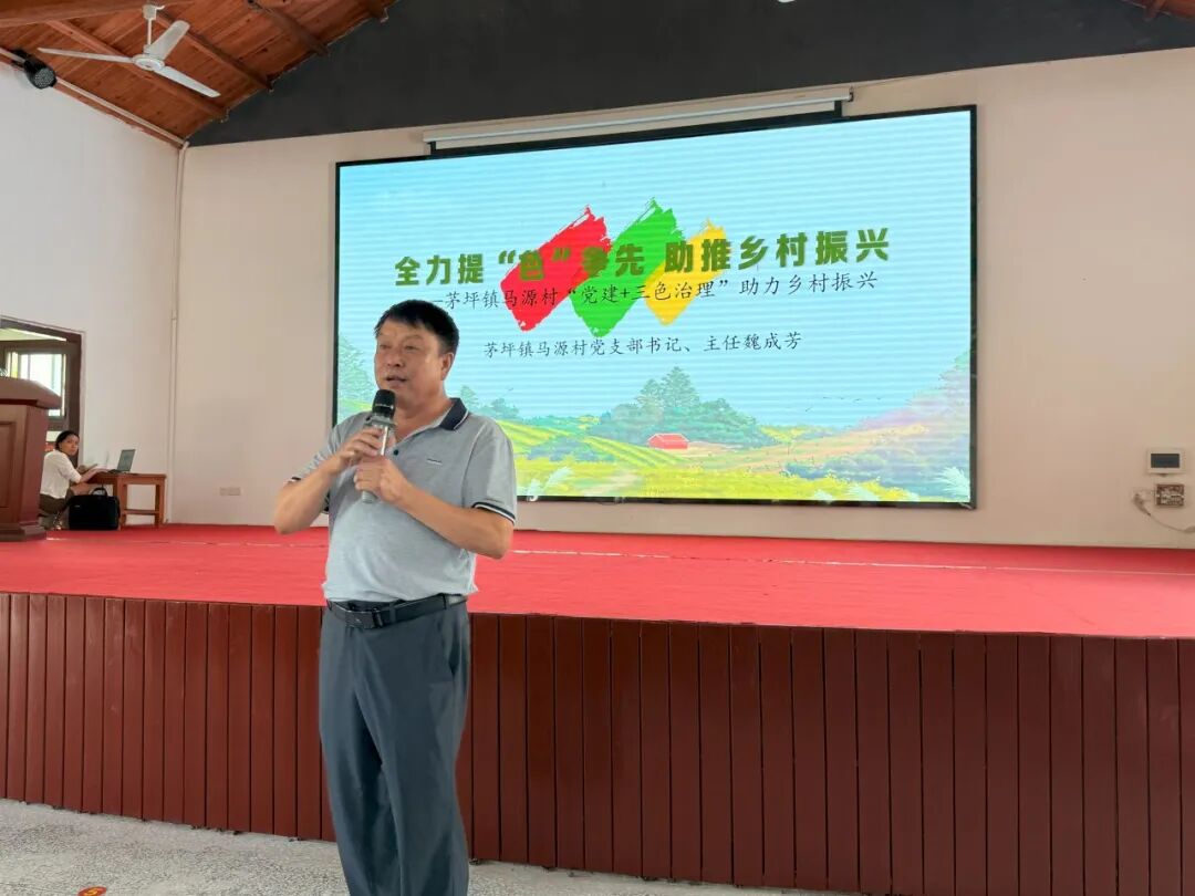 8月4日上午,赣劲十足队到达茅坪镇马源村,马源村党支部书记魏成芳为调研团讲解脱贫攻坚、乡村振兴经验。
