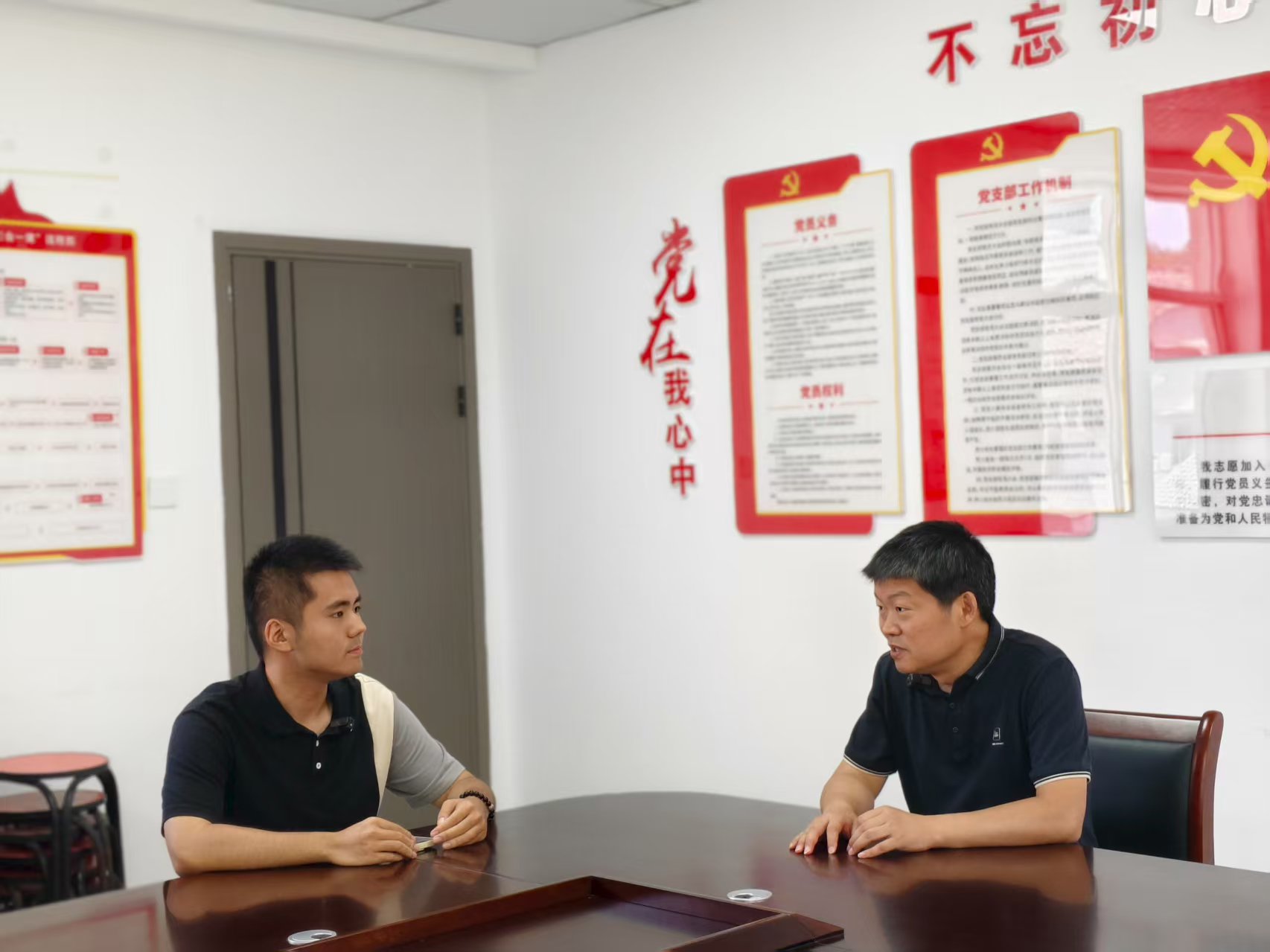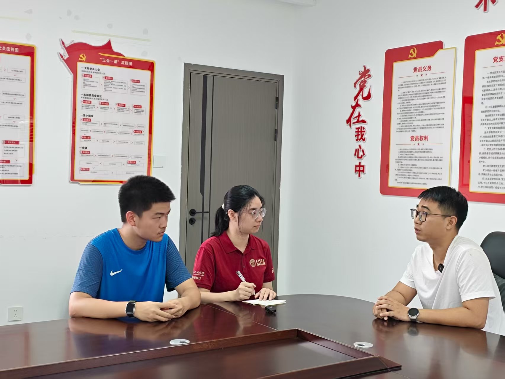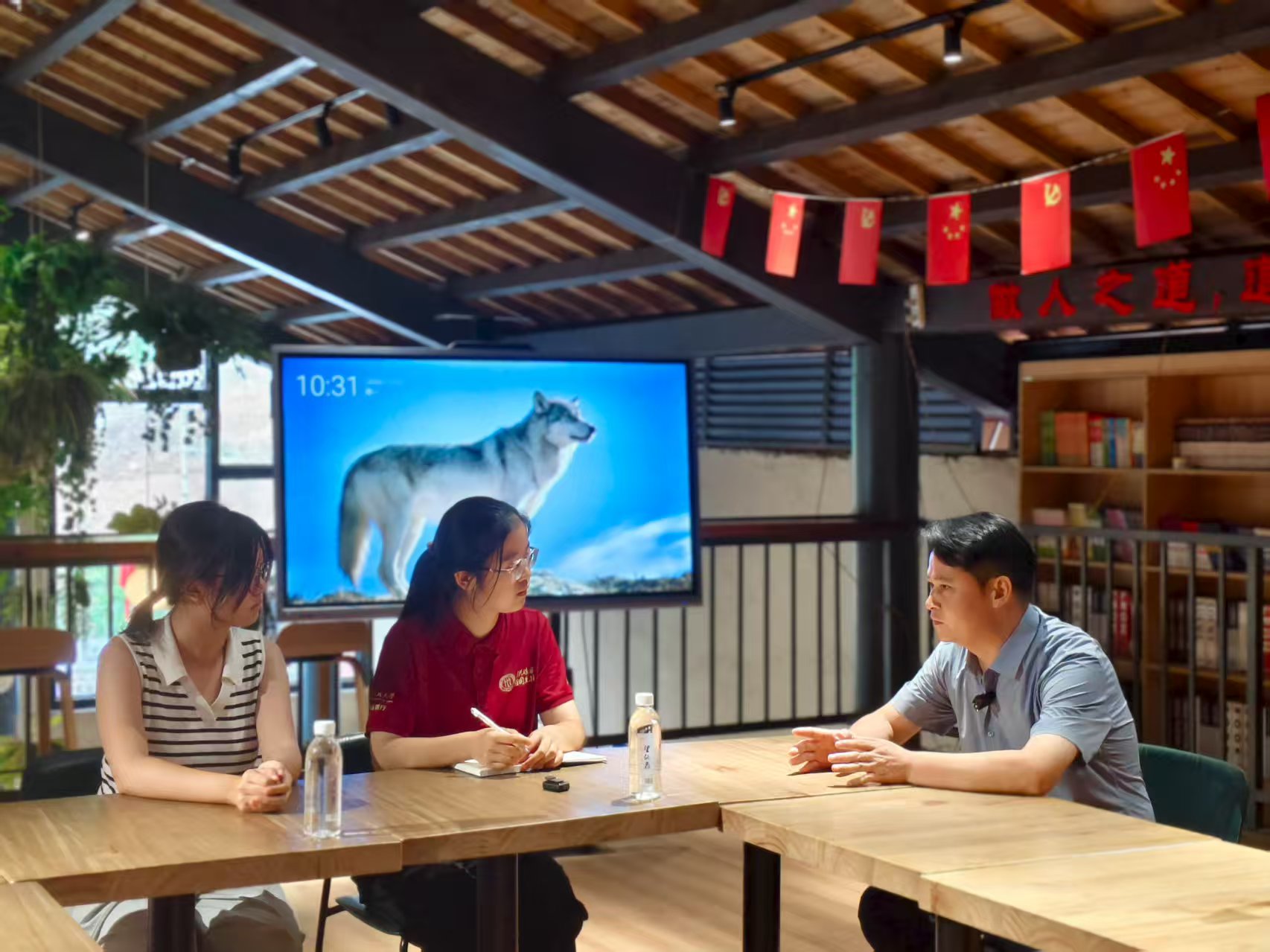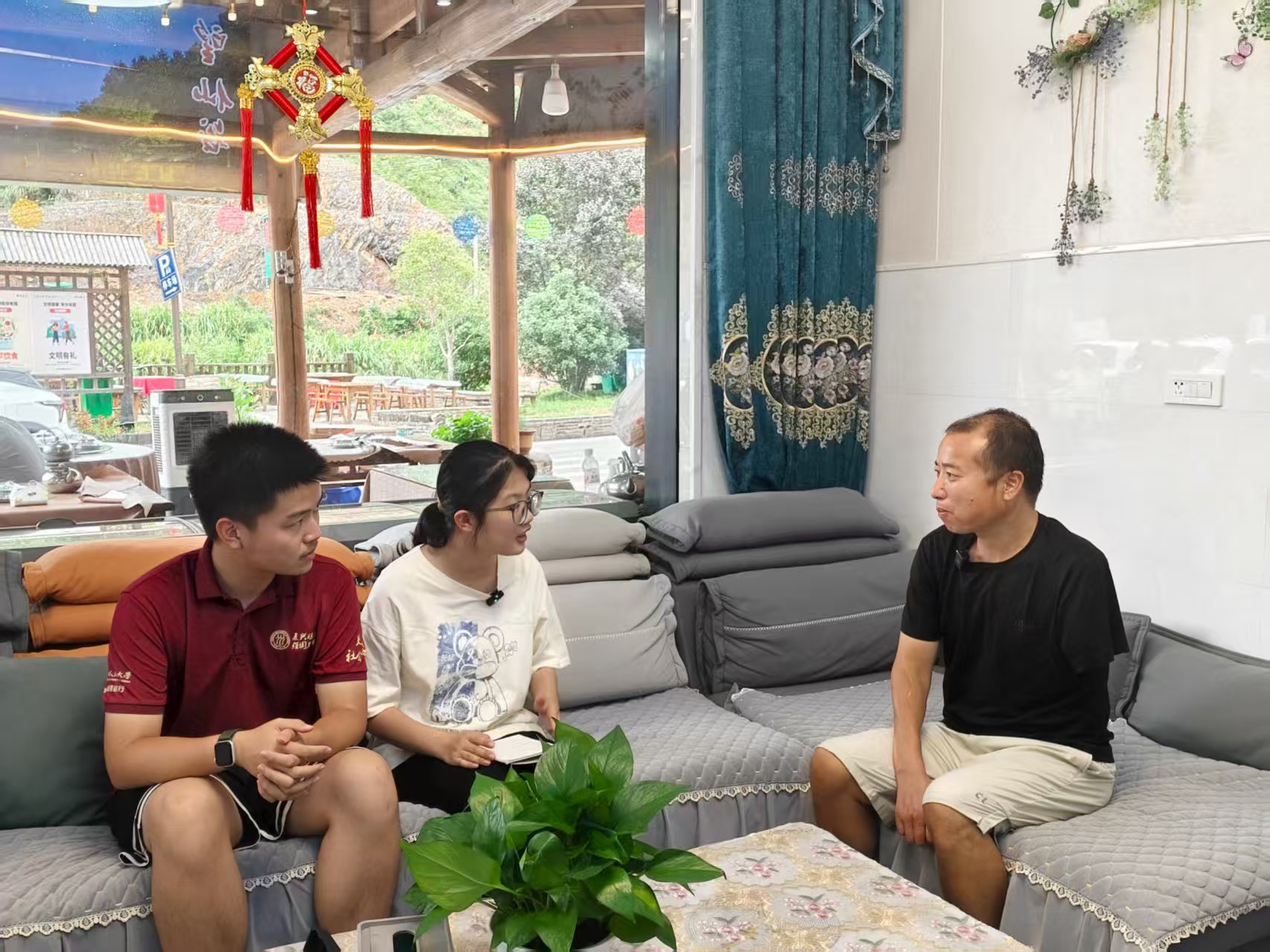 ▲vic67维多利亚3308本科生毛苏晴、新闻学院本科生熊闰访谈清水乡洪家村驻村干部黄晨啸